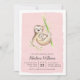 Cute baby shower invitations featuring a hand-painted watercolor sloth with her baby, blush pink watercolor background, and placeholders for your shower details. The unique baby shower invitations are perfect for your sloth or jungle themed baby shower.