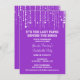It's the last fling before the ring so celebrate in style and get the girls together with this fun bachelorette party invitation. A row of sparkling fairy lights hang from the top of this invite with the text "It's the last fling before the ring!" underneath. Add customised party information below against the rich purple background and any extra text on the reverse (or delete it to leave the back blank). Available in alternate colours with matching products.