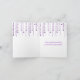 Send a heartfelt thank you with this trendy card. A row of sparkling fairy lights hang from the top of this bright purple card with customised text underneath. Add customised text inside or just delete it to leave it blank to handwrite your own message. Available in alternate colours with matching products.