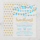 Celebrate in style with these super cute hanging love hearts "little sweetheart" baby shower invitations. The design features blue and gold glitter effect hanging love hearts with matching typography wording.