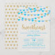 Celebrate in style with these super cute hanging love hearts "little sweetheart" birthday party invitations. The design features blue and gold glitter effect hanging love hearts with matching typography wording.