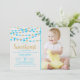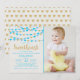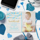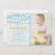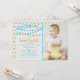 Celebrate in style with these super cute hanging love hearts "little sweetheart" birthday party photo invitations. The design features blue and gold glitter effect hanging love hearts with matching typography wording.