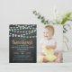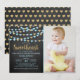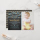 Celebrate in style with these super cute hanging love hearts "little sweetheart" birthday party photo invitations. The design features blue and gold glitter effect hanging love hearts with matching typography wording.