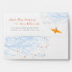 An origami orange paper cranes hanging on sky blue bare branches with tangerine berries against a white background wedding envelope.