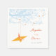 Modern Origami Orange Paper Crane Hanging On Sky Blue Branches With Double Monograms Against A White Background Asian Wedding Paper Napkins.