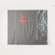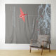 An origami red paper crane hanging on light blue branches against a grey background photo backdrop tapestry. An original outdoor / garden themed chic asian wedding design.