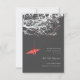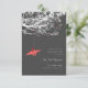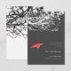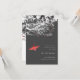 Origami red paper crane hanging on white/black branches against a dark/light background. The back design is in matching reverse colours. A double sided wedding dinner reception invite enclosure card.