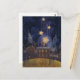 Decorate a friends mailbox with a bit of whimsy with this postcard with an original night scene painting of a girl standing on the roof of a brownstone in NYC with her dog hanging stars in a midnight blue sky. Anyone who loves fanciful paintings and New York City will enjoy this artistic postcard.