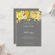 With its modern and sleek design, this invitation is sure to impress your guests and set the tone for your special day. Make your wedding invitation unforgettable with this unique and stunning grey invitation featuring hanging yellow flowers and greenery elements.