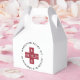Send your tired guests off with some recovery essentials (pain reliever, antacids, gum, etc) in these cute and clever favour boxes. Unique wedding favour design features "Hangover Relief Kit -- In Sickness and in Health" in black lettering curved around a red cross illustration bearing your initials and wedding date.