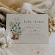 This gender neutral vintage woodland baby shower invitation from the Hannah Collection is perfect for a backyard baby shower. This cute boho design with a gender neutral animal theme features a baby bear with bumble bees, white flowers and summer greenery on a vintage cream background.