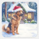 Hanoverian Scenthound Snowy Forest Cabin Santa Hat Square Sticker