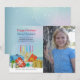 Celebrating Hanukkah and Christmas at your house? Here is a holiday card made just for you. It features presents and a menorah with a snowy base and a dazzling background. Just add your favourite photo to make it yours. Menorah by Vecteezy.