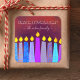 “Peace, love & light.” A playful, modern, artsy illustration of boho pattern candles helps you usher in the holiday of Hanukkah. Assorted blue candles with colourful faux foil patterns overlay a rich, deep burnt red orange textured background. Feel the warmth and joy of the holiday season whenever you use this stunning, colourful, personalised, custom name Hanukkah sticker. Matching cards, envelopes, wrapping paper, mugs, blankets, serving trays, home décor, and more are also available. Use this for someone special!