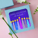 “Peace, love & light.” A playful, modern, artsy illustration of boho pattern candles helps you usher in the holiday of Hanukkah. Assorted blue candles with colourful faux foil patterns overlay a rich, deep blue textured background. Feel the warmth and joy of the holiday season whenever you use this stunning, colourful, personalised, custom name Hanukkah sticker. Matching cards, envelopes, wrapping paper, mugs, blankets, serving trays, home décor, and more are also available. Use this for someone special!