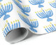 Hanukkah Botanical Menorah Watercolor Blue Wrapping Paper
