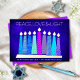 “Peace, love & light.” A playful, modern, artsy illustration of boho pattern candles in a menorah helps you usher in the holiday of Hanukkah. Assorted blue candles with colourful real gold foil patterns, real gold foil flames and menorah, overlay a rich, deep blue textured background. Faux hot pink purple diamond pattern foil on a cornflower blue background for the reverse side. Feel the warmth and joy of the holiday season whenever you send this stunning, colourful, personalised Hanukkah flat greeting card. Matching envelopes, stickers, tote bags, wrapping paper, serving trays, home décor, and more are also available. Send this to someone special!