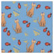 Cat lovers will be delighted with this fun whimsical "Hanukkat" pattern fabric, featuring an orange brown curious tabby cat wearing a kippah, red dreidels and yellow menorahs/channukiahs on a bright blue background. Perfect for your Hannukah / Chanukah decorations during the Jewish Festival of Lights!
