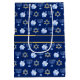 Beautiful Hanukkah gift bag in a dark blue star shape with a cool pattern of Judaism star, dreidel, and the Jewish menorah for the Chanukah holiday. Customise this design with your family name.