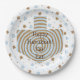 Hanukkah Dreidel Swirl Brown Blue Paper Plates.