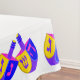 Add your name to this personalised Hanukkah tablecloth with a colourful Dreidels border pattern for one of a kind holiday decor. My original double Dreidels design in bold pinks, yellows, purples and blues spin around the border of this white holiday tablecloth. Jumbo text in bright blue is centred in the middle where you can add your name to "Hanukkah Blessings"... but you can erase the name option or remove it completely if you prefer. Set your Chanukah table on this colourful Dreidel tablecloth for an extra special touch. Take a peek in my shop to see all of my Colourful Dreidels Hanukkah party supplies.
