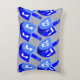 These cheerful blue and white Dreidels make this holiday accent pillow fun for your own home decorating or as a cute gift idea. The graphic art Hanukkah Dreidels are bold and bright and are juxtaposed by the soft faux silver background. These Dreidels are my own design and are available only here in my Zazzle shop, making this accent pillow a one of a kind find. Customise the two text templates for a truly custom pillow or delete the wording if you prefer. Pillow reverses to show a Dreidel pattern on the back.