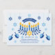 Start the fun of your Hanukkah party with this delightful invitation featuring the Star of David, a menorah and dreidels in shades of blue and gold. (<a href='https://www.freepik.com/free-vector/hanukkah-background-with-snowflakes-and-stars_996974.htm'>Designed by Freepik</a>). <br/><br/>The card is easy to customise with your wording, font, font colour, paper shape options and choice of six paper types.<br/><br/>Not exactly what you're looking for? All our products can be custom designed to meet your needs at no extra charge.<br/><br/>Simply contact us at heartfelthelper@gmail.com.<br/><br/>Coordinating products available: Just ask us!