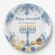 Introducing the “Hanukkah Harmony Plate” – a beautifully designed round paper plate perfect for your Hanukkah celebrations. This plate features a stunning illustration of a golden menorah with all candles lit, surrounded by elegant blue leaves, branches, gold stars, and coins that symbolise prosperity. The text “HAPPY HANUKKAH” is prominently displayed, making this plate an ideal choice for adding a festive touch to your holiday table. Celebrate in style with the “Hanukkah Harmony Plate” and make your gatherings extra special! 🕎✨