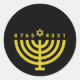 Seal your Hanukkah cards with elegance using a round black sticker featuring a gold Hanukkiah. Each flame is replaced with numbers 1–8, and the central shamash candle is highlighted with a Star of David.