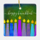 “Happy Hanukkah.” A playful, modern, artsy illustration of boho pattern candles helps you usher in the holiday of Hanukkah in style. Assorted blue candles with colorful faux foil patterns overlay a rich, deep green textured background. On the back, personalize with your family name and year, over a tiny dark green Star of David pattern and background. Feel the warmth and joy of the holiday season whenever you hang up this stunning, colorful Hanukkah custom keepsake ornament. Matching cards, envelopes, wrapping paper, mugs, blankets, serving trays, home décor, and more are also available. A great gift for someone special, even yourself!