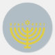 Seal your Hanukkah cards with elegance using a round blue-grey sticker featuring a gold Hanukkiah. Each flame is replaced with numbers 1–8, and the central shamash candle is highlighted with a Star of David.