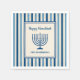 Bring timeless elegance to your Hanukkah table with these blue striped napkins featuring a classic menorah design. The rich navy and cream palette adds a sophisticated touch to your celebration. Personalize with your family name for a festive, polished look perfect for holiday dinners or Hanukkah parties.