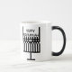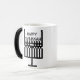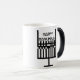 Hanukkah mug with a menorah design inspired by the work of Glasgow artist Charles Rennie Mackintosh. Mug starts black and fades to white with black design remaining.