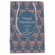 A pattern of rustic faux wood menorahs and your custom text makes these personalised Hanukkah gift bags a festive choice for your Festival Of Lights celebrations. The rustic faux woodgrain menorahs repeat on a rich dark blue background while a solid deep blue oval edged in light blue holds two sets of text templates in light blue for you to personalise. Add your name and a custom Chanukah message to the smaller font while the larger Happy Hanukkah text can be edited to Love & Light if you wish. This unique Hanukkah design fits on all three sizes of gift bags, from small (great for party favours) to medium (shown) or the tall wine bottle bag. Add a designer touch with custom Hanukkah gift bags printed just for you.