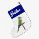 A blue and white Hanukkah stocking with a blue Quaker parrot. The name can be changed.