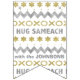 Hanukkah Swallowtail Banner, "Hug Sameach" design, Swallowtail shaped, Bunting Banner. This Hanukkah, Swallowtail Banner is made up of 16 customisable swallowtail shaped flags. Personalise the text, "with the Johnsons" by using your favourite font colour, size, style and wording.