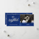Add your photo to this lovely Hanukkah two-sided greeting with your name and the year on the front, then add a personal message on the back. The lovely word art is digitally created to give a silver-leaf effect and matched with a royal blue and silver swirling background, then the design is accented with a lovely menorah and the Star of David.