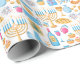 Hanukkah Wrapping Paper with Menorah, Doves, Food and other festive elements