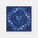 Hanukkiah Symbol. Happy Hanukkah Party Jewish Holiday Blue Menorah. Jewish Holiday Chanukkah Decoration with traditional Chanuka decorative symbol - Navy Blue colour hanukkiah menorah, candlestick with candles, star of David and neon blue glowing lights illustration. Hanukkah Festival of lights Event Decoration. Jerusalem, Israel. Crafts & Party Supplies > Party Supplies > Tableware > Paper & Party Napkins Judaica Modern Design with text template. Personalise them by adding name or wishes text. Two sides design.