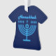 Hanukkiah Symbol. Happy Hanukkah Party Jewish Holiday Blue Menorah. Jewish Holiday Chanukkah Decoration with traditional Chanuka decorative symbol - Navy Blue colour hanukkiah menorah, candlestick with candles, star of David and neon blue glowing lights illustration. Hanukkah Festival of lights Event Decoration. Jerusalem, Israel. Home > Home Décor > Christmas Décor > Ornaments Modern Design with text template. Personalise them by adding name or wishes text. Two sides design.