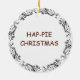 Funny food pun Christmas ornament. Funny quote, "Hap-pie Christmas " Coconut cream pie graphics.