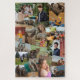 Photo collage puzzle personalised with 21 of your photos in a vertical collage of overlapping photos without any borders.
