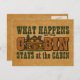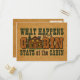 Great invitation for outdoors men and women featuring a cabin in the woods with a rifle and fishing pole outside. Cabin dwellers in the windows are having a party and showing off their big catch of fish. Text says WHAT HAPPENS AT THE CABIN STAYS AT THE CABIN. Wood grain finish and background. Customisable text. Also on T-shirts, mugs, tote bags, posters, iPad covers and more! PinkInkArt original!