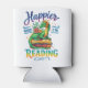 Vibrant, colourful design featuring an open book, colourful dragon, and flowers. The colourful text reads: "Happier when I'm reading". This design is available on a wide variety of products.