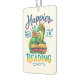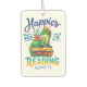 Vibrant, colourful design featuring an open book, colourful dragon, and flowers. The colourful text reads: "Happier when I'm reading". This design is available on a wide variety of products.