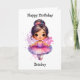 Personalised Birthday card for a little girl. Pretty watercolor little Asian, Bi-racial Hispanic, Latino Mexican girl ballerina in pink tutu. Inside is a colouring page. All text on the card can be changed in the personalise area.