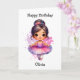 Personalised Birthday card for a little girl. Pretty watercolor little Hispanic, Latino Mexican girl ballerina in pink tutu. Inside is a colouring page. All text on the card can be changed in the personalise area.