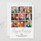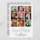 Modern collage style holiday greeting features nine (9) square photo spaces - perfect for Instagram pics, Happiest Holidays text in silver grey script writing, custom black text that can be personalised, and a colourful plaid pattern dresses up the back of the card. Photo tips: click "Change" to replace the default photo with your photo. Photos may need to be cropped to desired square shape prior to uploading.