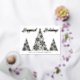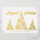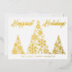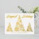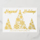 A chic gold script company holiday gold foil card with 3 beautiful trees made of golden snowflakes below Happiest Holidays written in cursive script. Add your business name below. Personalise these corporate gold foil cards for client marketing in the winter.