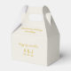 Customise this elegant wedding favour box featuring a simple and minimalistic design. An elegant and subtle "happily ever after" gold script typography, followed by simple and modern sans serif font for newlyweds monogrammed initials and wedding date, on sophisticated and traditional alabaster white background. Customisable thank you for celebrating our wedding typography near the favour box handles to making it unique and special for your guests.